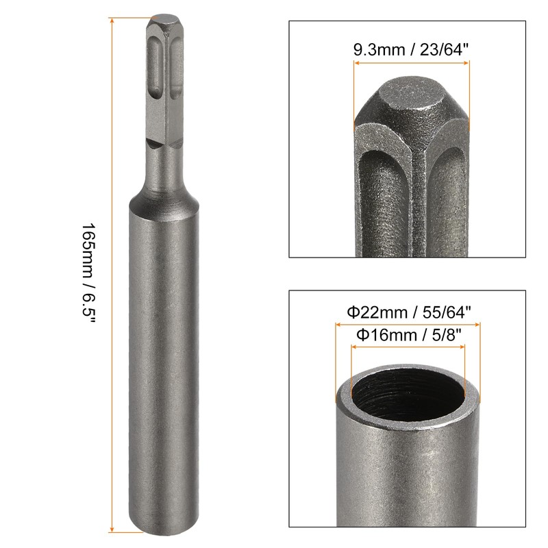 • Size - Ground Rod Driver's shank diameter is 23/64inch(9.3mm), driver outer diameter is 55/64inch(22mm), inner diameter is 5/8inch(16mm), total length is 6.5inch(165mm)