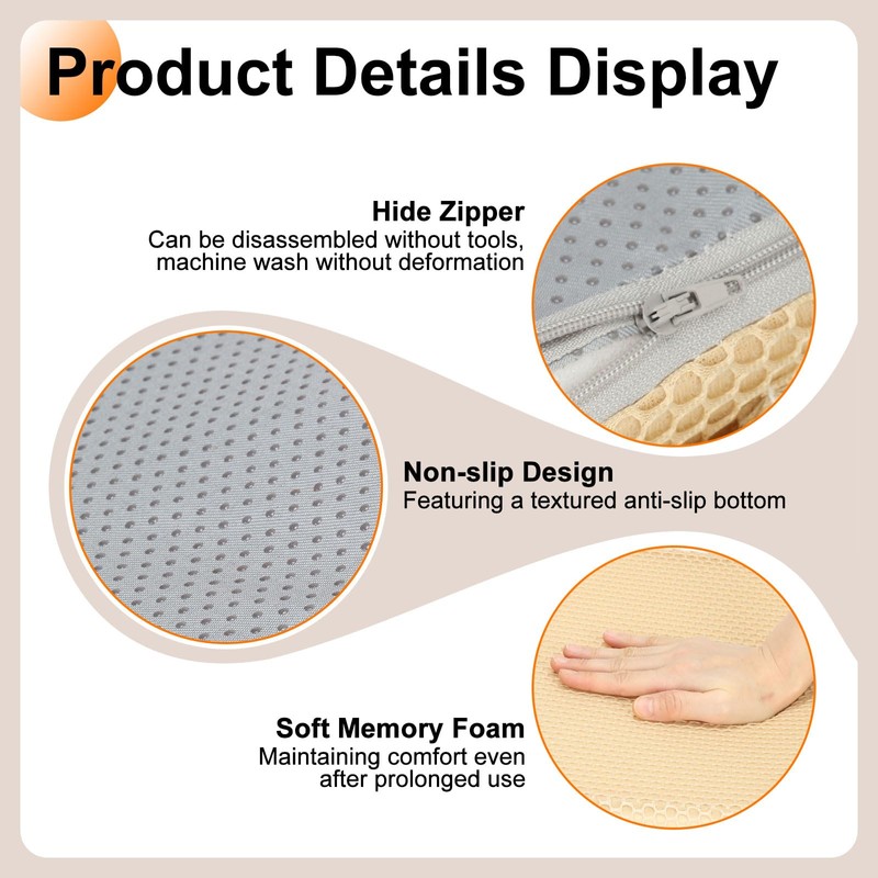 - Feature - The cushion features a thick back that tapers towards the front, offering optimal support for the lower back and preventing pressure buildup under the thighs. It can be used as a lumbar support pillow or a seat cushion, enhancing comfort during long drives. The large opening zipper allows for easy removal of the cover for cleaning.