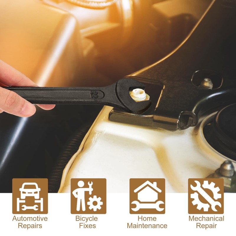 - Applications - Single open end wrenches are useful tools primarily used for tightening or loosening nuts and bolts with flat sides, especially in situations where a socket wrench or adjustable wrench cannot reach due to space constraints. Widely applicable in automotive repairs, plumbing, furniture assembly & repair, machinery maintenance,construction and DIY projects.