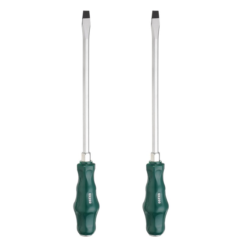 HARFINGTON 2pcs SL8 Flat Head Screwdriver 11.8" Magnetic Demolition Slotted Screwdrivers 7.9" CR-V with Ergonomic Handle for DIY Repairing, Green