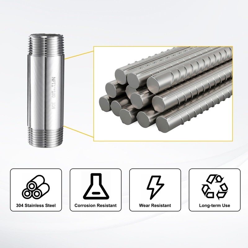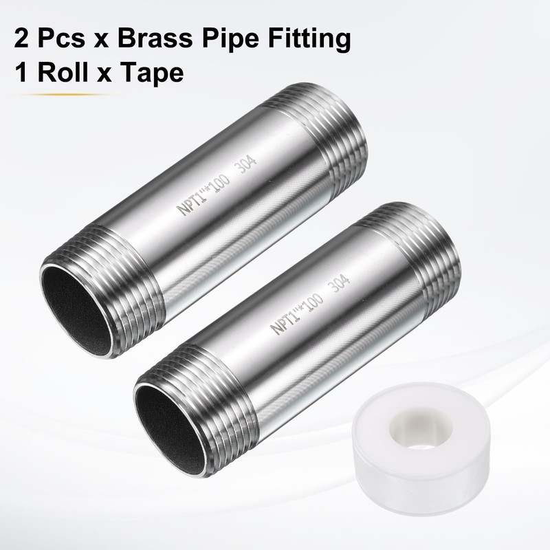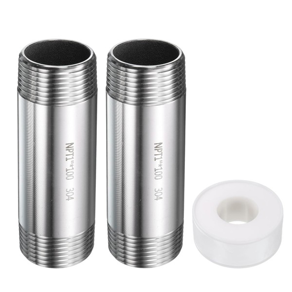 HARFINGTON 2pcs Stainless Steel Nipple Pipe Fitting 1" NPT x 1" NPT Male Threaded 3.94" Length Nipple Cast Pipe for Connecting Extending Beer Machine Bathroom Gas Air Plumbing