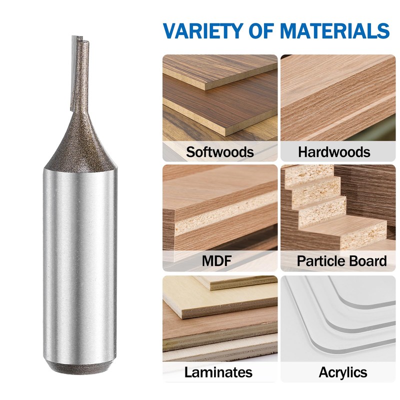 • Various Application - Flush trim router bit is designed to be used on both hardwoods and softwoods, as well as materials like MDF, plywood, and laminates, solid hardwoods, density boards, particle boards, and multi-layer boards.