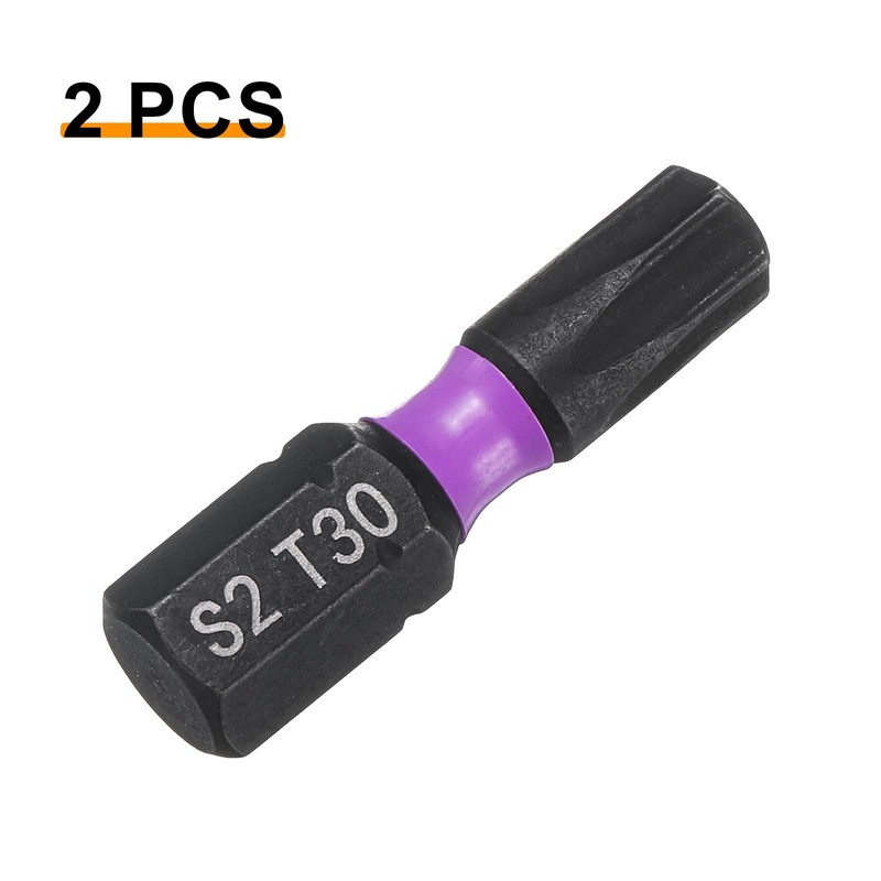- Size - T30; Total Length: 25mm / 1"; Shank: 6.35mm/ 1/4 inch hex shank; Torx head drill bit specifically designed for driving screws into wood, metal, and other materials effortlessly. Can accurately tighten screws without damaging screws and screwdriver bits