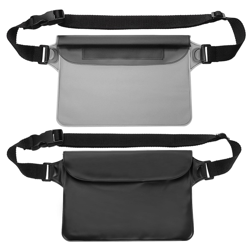 HARFINGTON 2pcs Waterproof Pouch Waterproof Fanny Pack Floating Waterproof Bag with Adjustable Waist Strap for Travel Beach Swimming Kayaking Boating Pool Accessories, Clear Black Solid Black