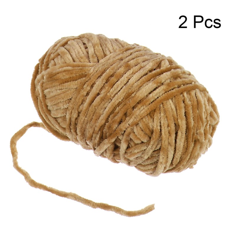 HARFINGTON 2Skeins Velvet Yarn Chenille Yarn 2x100g/7.1oz 174 Yards Total Length #6 Super Bulky Polyester Soft Blanket Yarn for Knitting Weaving Bag, Light Khaki