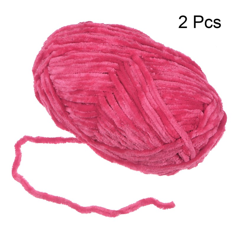 HARFINGTON 2Skeins Velvet Yarn Chenille Yarn 2x100g/7.1oz 174 Yards Total Length #6 Super Bulky Polyester Soft Blanket Yarn for Knitting Weaving Scarf, Hot Pink