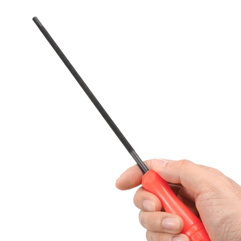 - Size - The chainsaw sharpening file measures a diameter of 4.8mm (3/16-inch), a filing length of 200mm (8-inch), a total length of 290mm (11.4-inch) and a handle length of 90mm (3.5-inch).