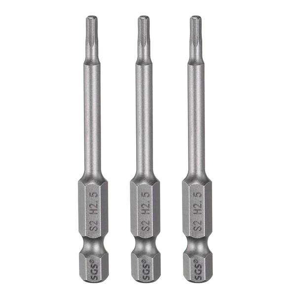 HARFINGTON 3pcs H2.5 Hex Head Drill Bit Wrench 2.5mm Metric Flat Tip 1/4" Hex Shank 65mm (2.56") Long Magnetic Hexagonal Screw Driver Socket Industrial Screwdriver Power Bits