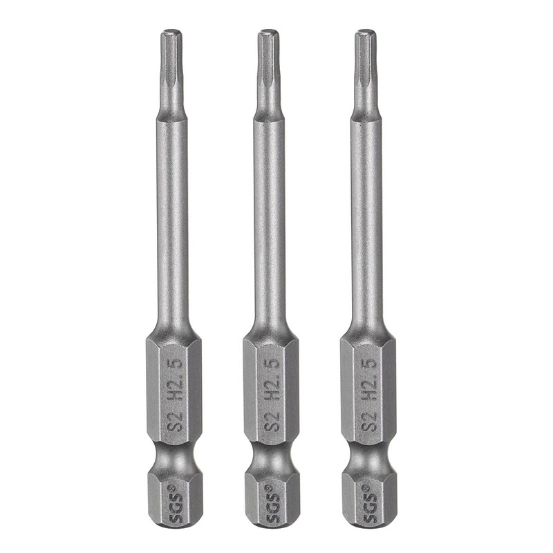 - Size - Metric flat hex head size: H2.5 (2.5mm); hex shank size: 1/4"; overall length: 65mm (2.56"); hardness: HRC59-61 (The recognized stable hardness is around HRC60.). The H value indicates the size of the hexagonal head. The larger the value, the larger the head, and the smaller the value, the smaller the head.