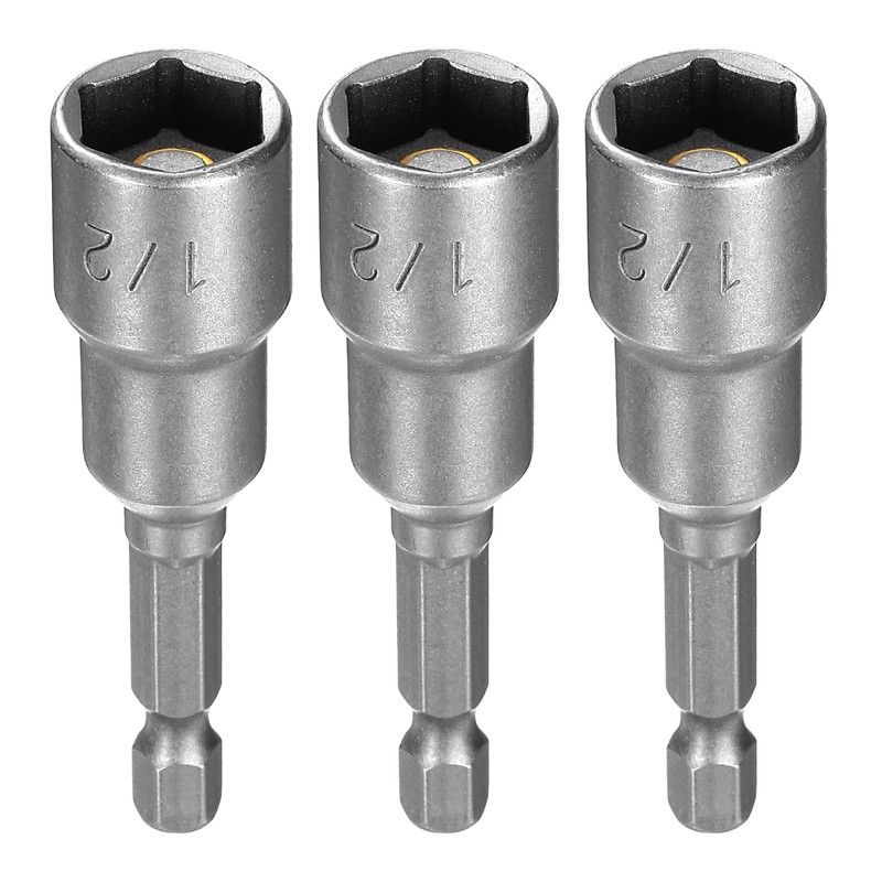 HARFINGTON 3pcs Hex Nut Driver Drill Bit 1/2" 6-Point Socket 1/4" Hex Shank Magnetic Nut Setter CR-V Steel Quick-Change Nut for Power Drills Impact Drivers, Silver Tone