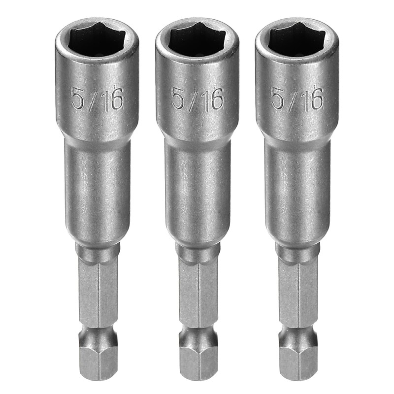 HARFINGTON 3pcs Hex Nut Driver Drill Bit 5/16" 6-Point Socket 1/4" Hex Shank Nut Setter CR-V Steel Quick-Change Nut for Power Drills Impact Drivers, Silver Tone