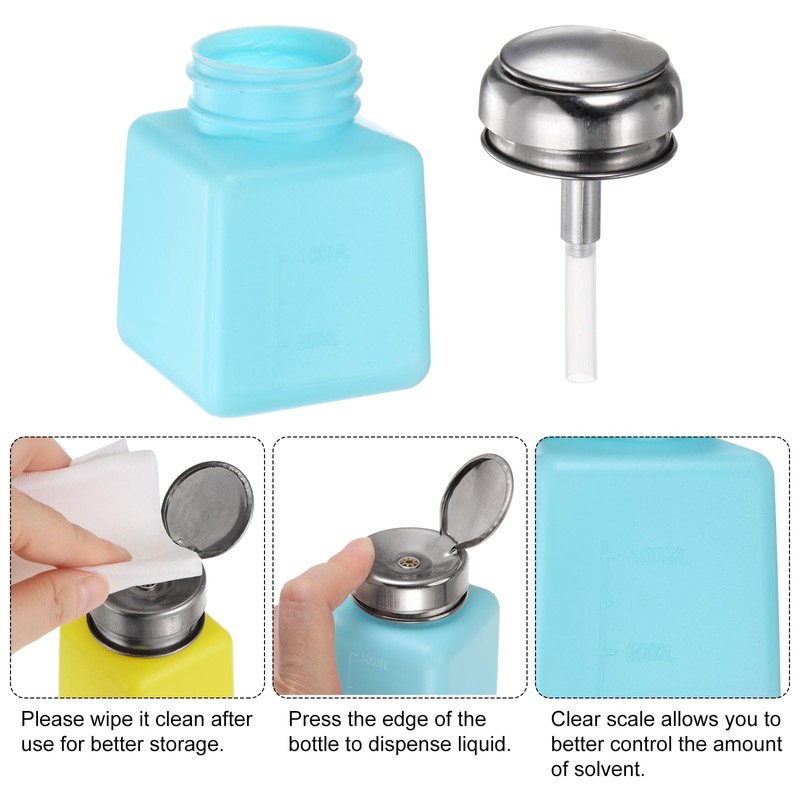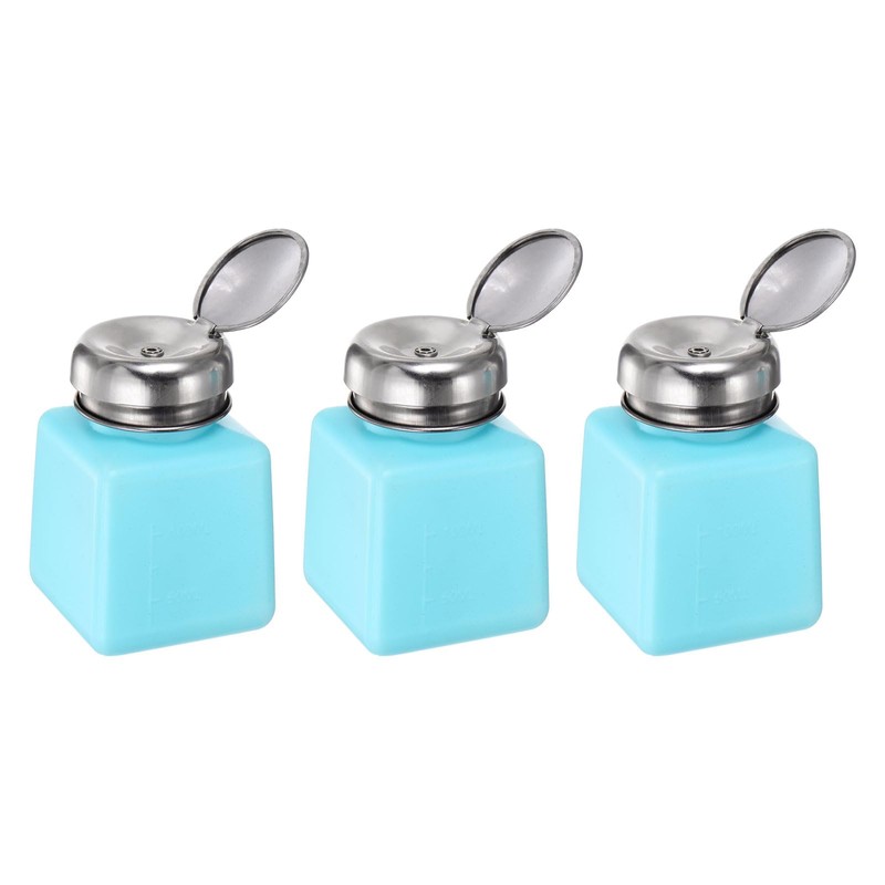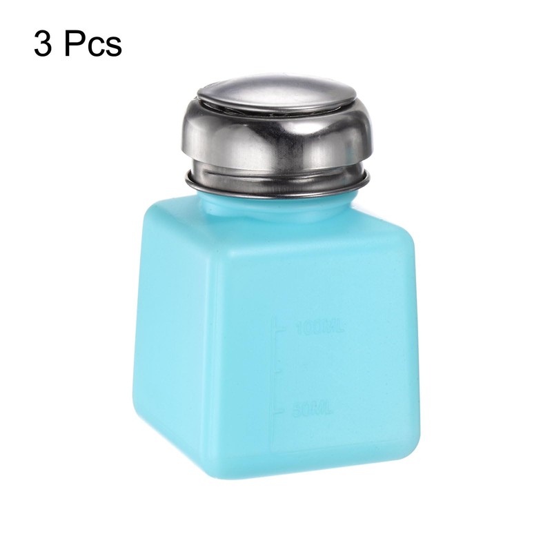 HARFINGTON 3pcs Solvent Alcohol Dispensers 100ml(3.4oz) Push Down Liquid Dispenser Pump Bottle with Sealing Stainless Steel Lid for Acetone Cleanser Polish Remover, Blue