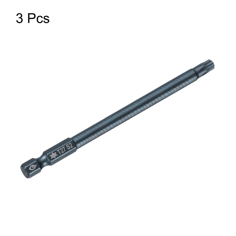 - Size - Torx Bit Size: T27, Hex Shank Size: 1/4", Total Length: 100mm / 4", Rod Diameter: 6mm / 0.24", hardness: HRC58-62. Each magnetic torx drill bit is engraved with a clear specification for easy and quick identification.