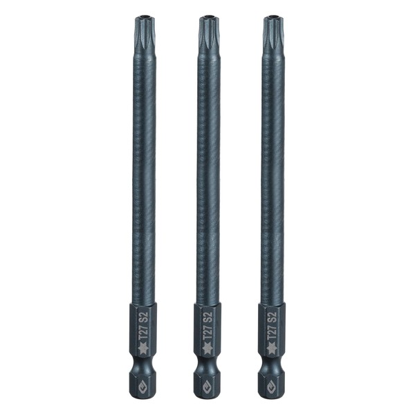 HARFINGTON 3pcs T27 Torx Screwdriver Bit 1/4" Hex Shank 4" Long S2 Steel Magnetic 6 Point Screw Driver Bits Industrial Grade Tamper Proof Star Drill Bits with Hole Torx Head