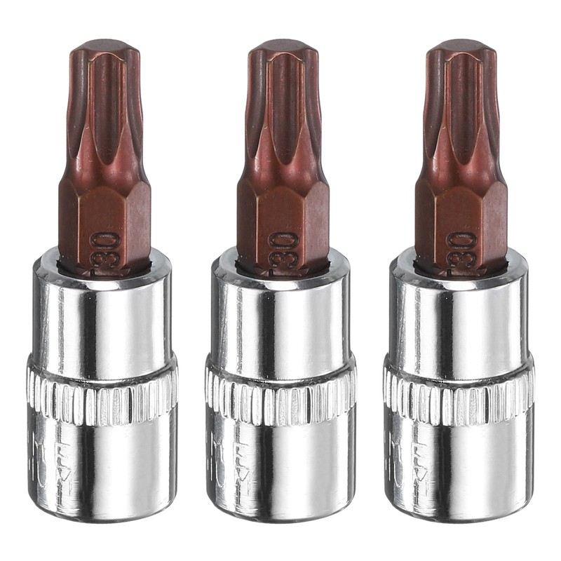 HARFINGTON 3pcs T30 Torx Bit Socket 1/4" Square Drive Star 6 Point S2 & CR-V Steel Socket Ratchet Wrench Bits, Silver Red