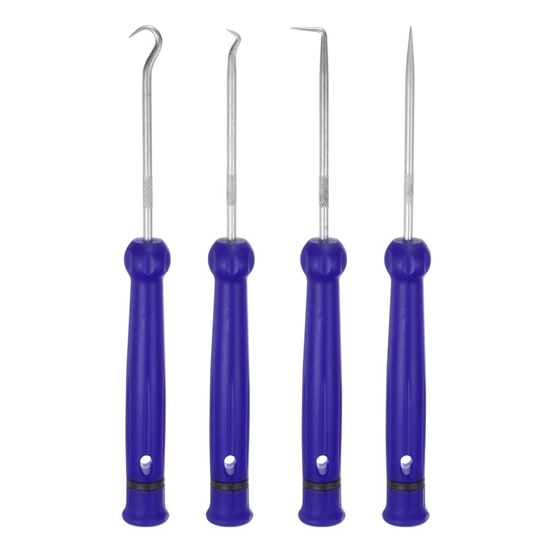 HARFINGTON 4 Pieces Pick and Hook Set 180mm Zinc Alloy Nylon Handle Round Automotive Pick Tool Set for Removing O Rings Small Items, Blue