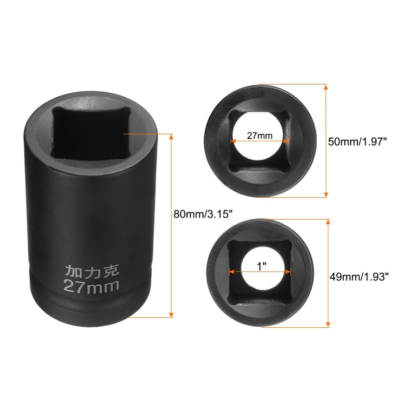 - Size - 1" Drive; 27mm Square Impact Socket; Total Length: 80mm / 3.15"; Package Includes: 1 x 4 Point Square Socket.