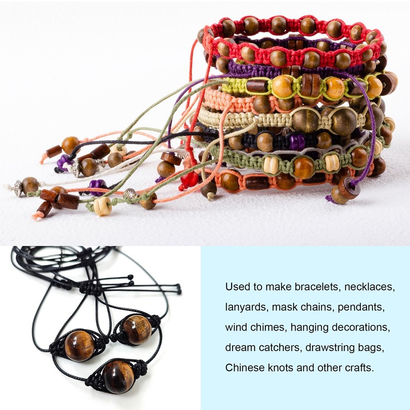 - Feature - Nylon beading thread is versatile and has bright and varied colors, providing endless possibilities for your creative projects. Its uses include beading, macrame knots, weaving, hanging, wrapping, knotting, winding, sewing, etc. It can be used to make bracelets, necklaces, lanyards, mask chains, pendants, wind chimes, hanging decorations, dream catchers, drawstring bags, Chinese knots and other crafts.