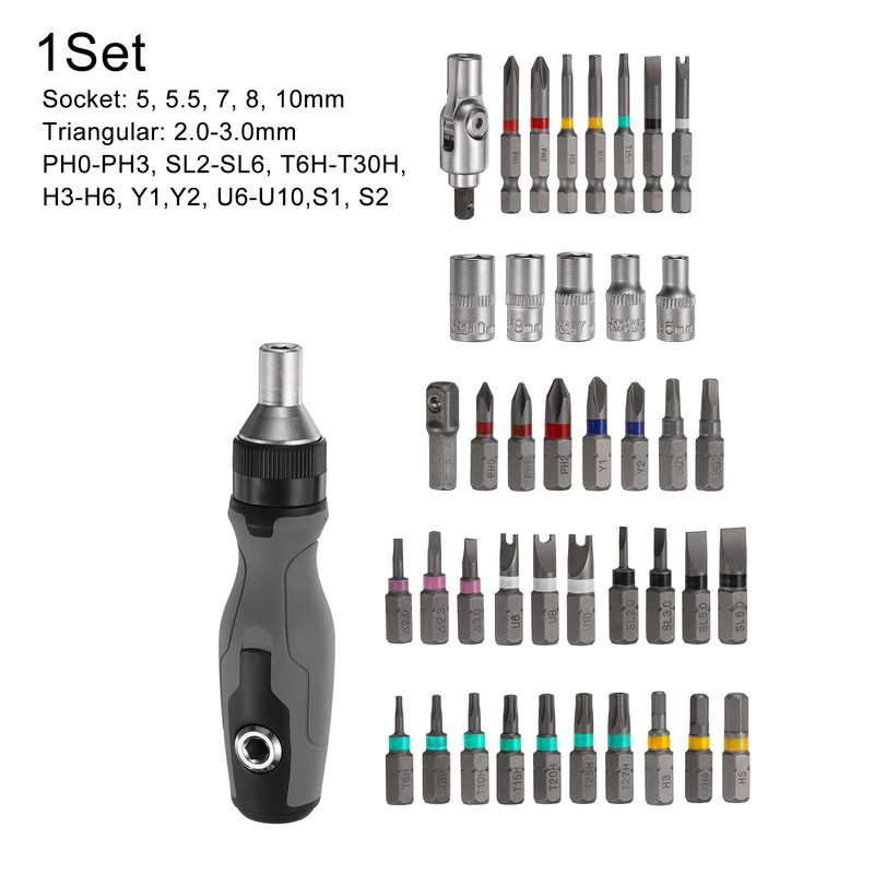 • Size - 25mm Bit Type: PH0-PH3, SL2-SL6, T6H-T30H, H3-H6, Y1,Y2, U6-U10, S1, S2, Triangular: 2.0-3.0mm; 50mm Bit Type: U6, PH1, PH2, SL5.5 , T15H, H3, H4; Socket: 5, 5.5, 7, 8, 10mm.