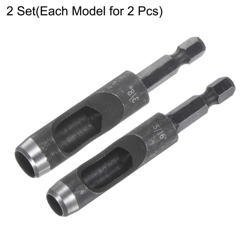 HARFINGTON 4pcs 5/16",3/8" Leather Hollow Hole Punch 1/4" Hex Shank for Drills, Belt Hole Punch Punching Cutter Tool for Thick Fabrics Leathercraft Working