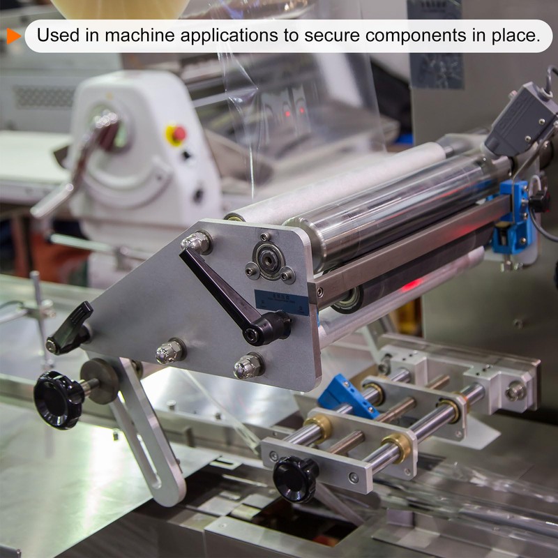 • Applications - Clamping lever handles are commonly used in machine applications to secure or clamp components in place, such as industrial machinery (milling machines, drilling machines, lathes), woodworking equipment (saws, routers, planers).
