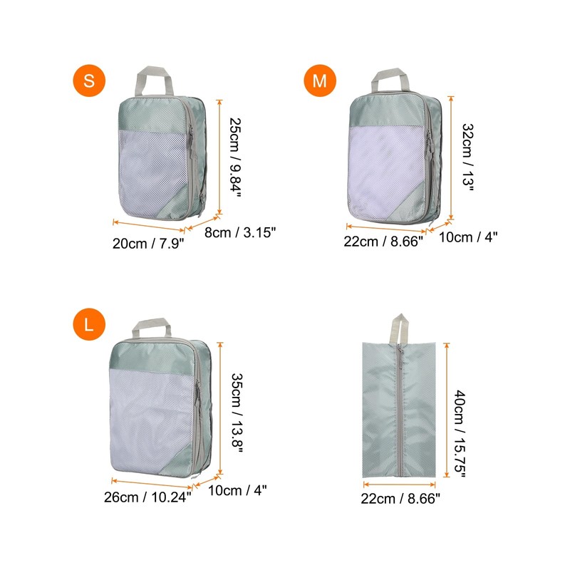 - Size - S: 20x30x10cm / 7.9x11.8x4inch; M: 25x35x10cm / 9.8x13.8x4inch; L: 30x40x10cm / 11.8x15.7x4inch;Shoe bag:22x40cm / 8.66x15.75inch. One piece of each size.