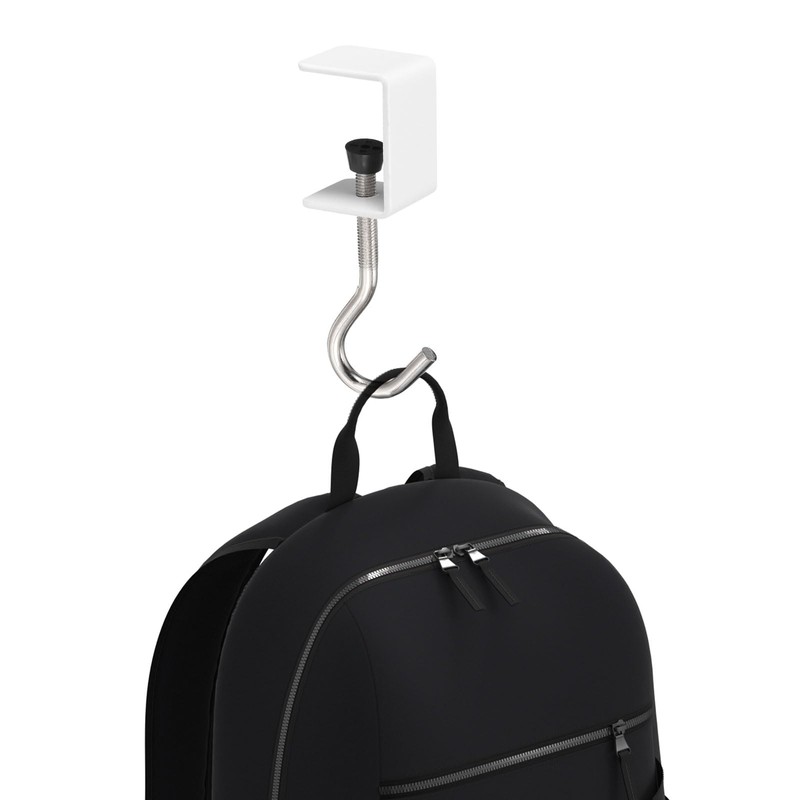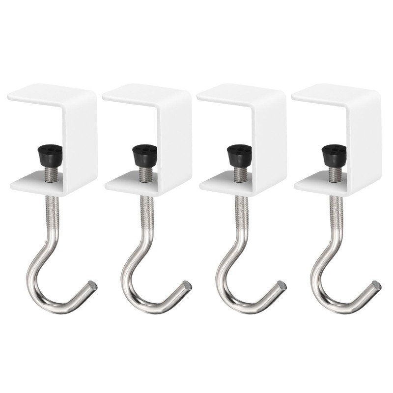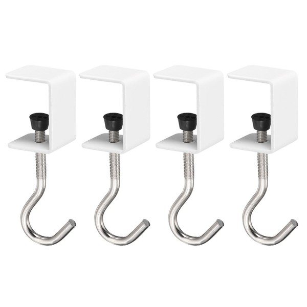 HARFINGTON 4pcs Desk Hook Clamp 0.2"-1.4" Clamping Range Bag Hook for Backpack Table Purse Clothes Portable Desk Mount Bag Holder, White