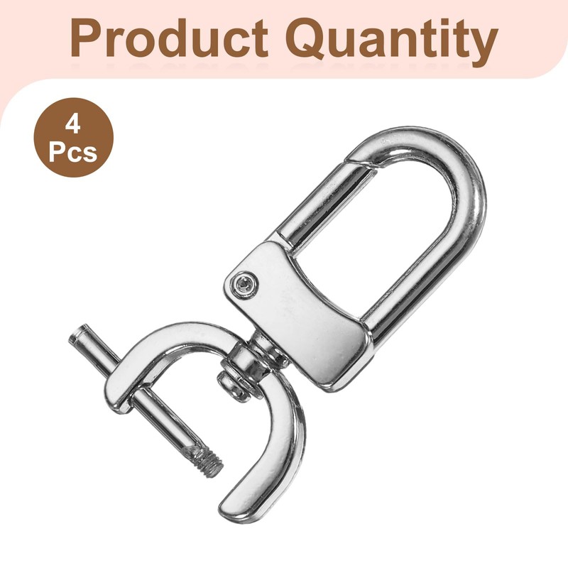 HARFINGTON 4pcs Detachable Snap Hook Swivel Clasp 5/8" (16mm) Zinc Alloy D-Rings Lobster Claw Clasp with Screw Bar for Keychain Lanyard Purse Hardware DIY Craft, Silver-White