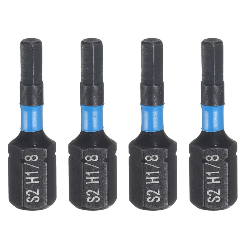 HARFINGTON 4pcs H1/8 SAE Hex Screwdriver Bit 1/4" Hex Shank 25mm/1" Length Magnetic Hexagon Head Hex Bits S2 Steel Screw Driver Bit Industrial Grade Electric Drill Bits