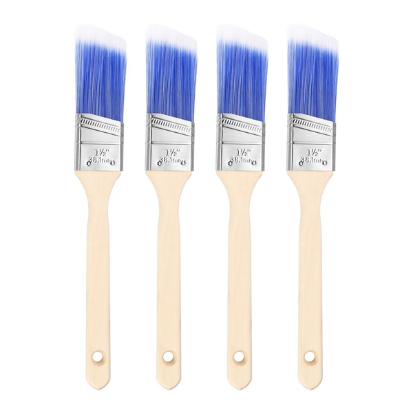 HARFINGTON 4pcs Paint Brushes 1.5" Angle Paint and Chip Brushes with Wooden Handle for DIY Paint Flat Art Furniture Fences Deck Wall Trim, Blue