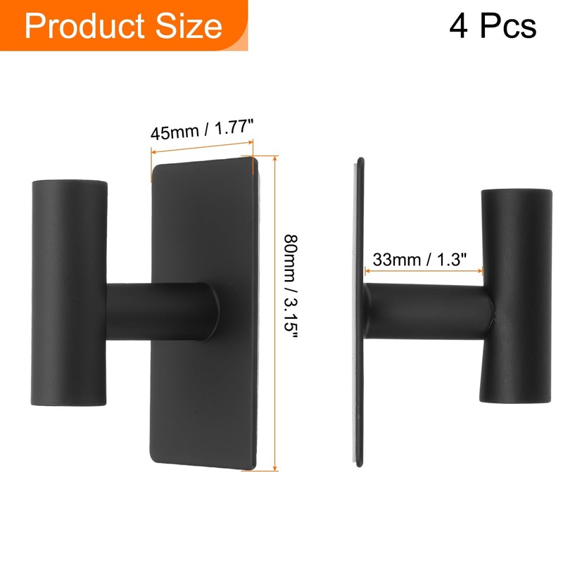 - Size - Total Size: 80mm / 3.15"(L) x 45mm / 1.77"(W) x 33mm / 1.3"(H); Finish: Brushed; Color: Black; Installation Method: Self-Adhesive; Package Included: 4 x Adhesive Hook.