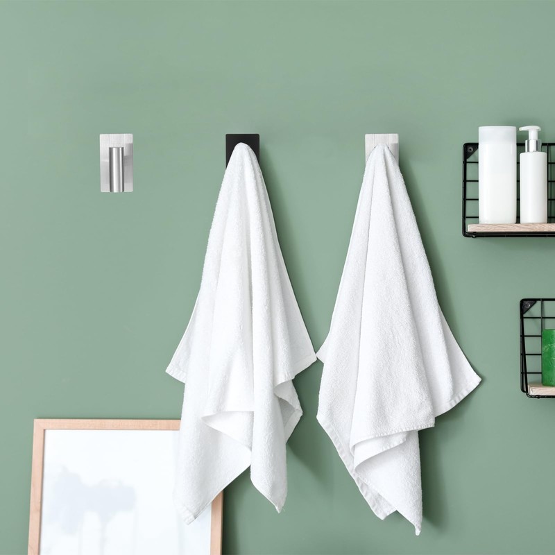 Strong adhesive hook is easy to use, no drilling and tool installation is required, just need to tear off the protective film on the back of the hook and press it to stick to the wall. Before using the towel hook, please keep the wall clean, dry and smooth, and it is best to wait for 24 hours to ensure better adhesion of the wall hook. If you want to disassemble it, use a hair dryer to heat the melted glue, it can be easily removed without damaging the wall.