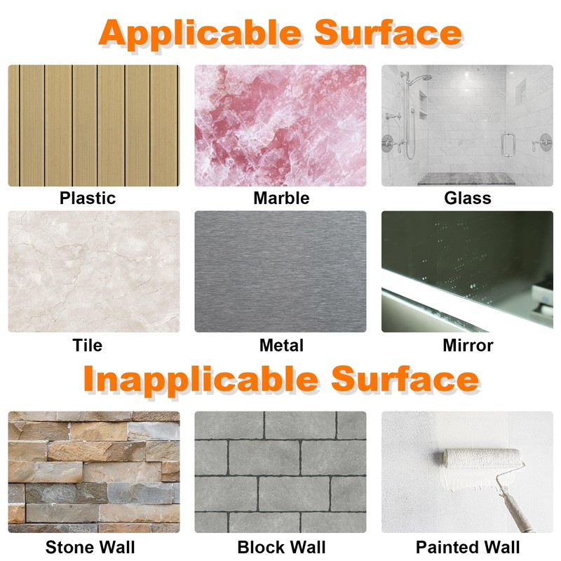 Bathroom towel hook is suitable for windows, mirrors, glass, metal, tiles, marble surfaces and other non-porous, smooth and solid surfaces. You can install it in the bathroom, bedroom, kitchen, living room, car, store, or office to hang and store items. However, it is unsuitable for oiled surfaces, porous, uneven and rough surfaces such as painted walls, plaster walls, concrete walls, wallpaper, etc. Please do not use it in the following places.