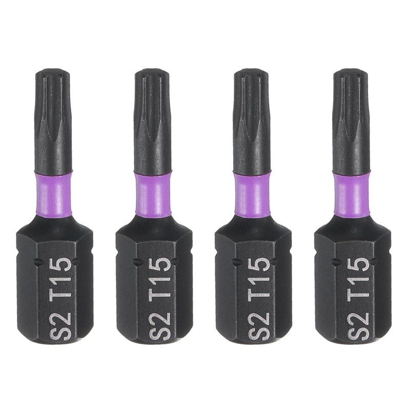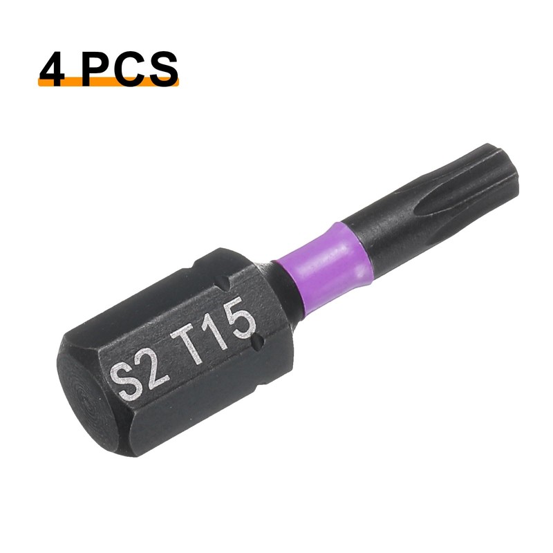 - Size - T15; Total Length: 25mm / 1"; Shank: 6.35mm/ 1/4 inch hex shank; Torx head drill bit specifically designed for driving screws into wood, metal, and other materials effortlessly. Can accurately tighten screws without damaging screws and screwdriver bits