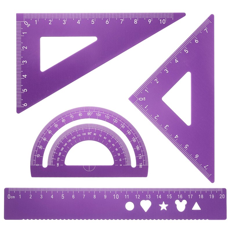 - Package Content - 1pcs straight rulers, 1pcs 30/60 degree triangle rulers, 1pcs 45/90 degree triangle rulers, 1pcs protractors. Different types of rulers can meet different drawing needs and improve measurement and drawing efficiency.