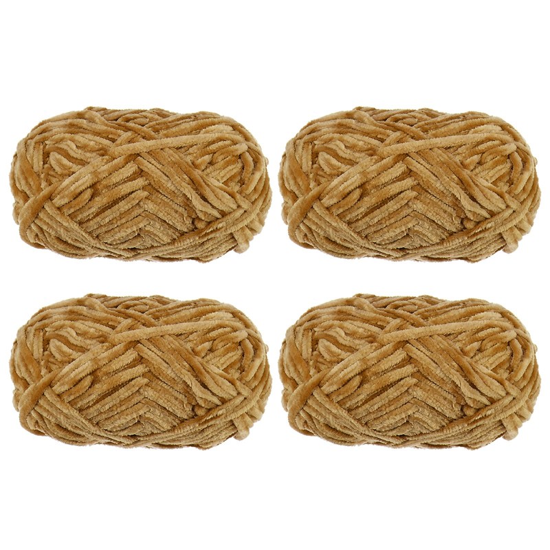 HARFINGTON 4pcs Velvet Yarn Soft Chenille Yarn 4x100g/14.1oz (347yds) Fluffy Warm Yarn for Knitting Crochet Weaving Blankets Bag Scarf Gloves, Khaki