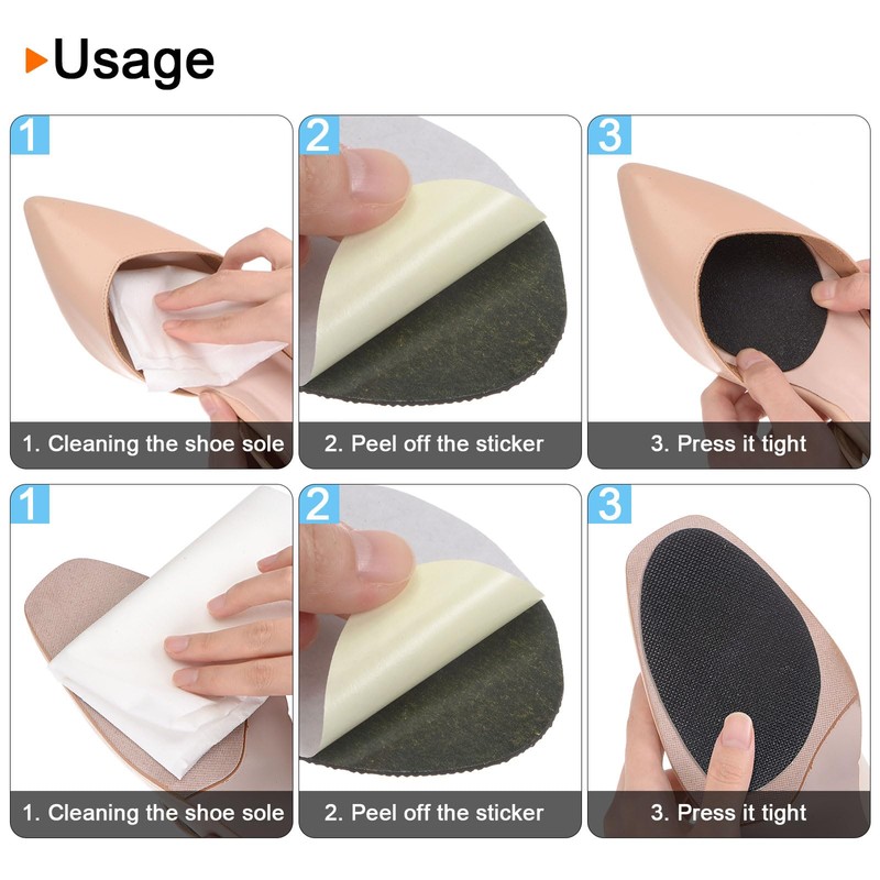 - Application - Noise-reducing non-slip pads are suitable for most types and any size of shoes, unisex, such as can be used on leather shoes, sneakers, sandals, high heels, boots, and flats. Can also be used inside the shoe as a front foot pad to make oversized shoes more comfortable.