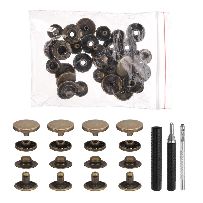 - Feature - Snap button kit has a simple and generous shape, delicate texture, and rich luster. It is suitable for leather products of various styles. Contains the tools required for installation, and can easily and quickly install buckles on leather products.