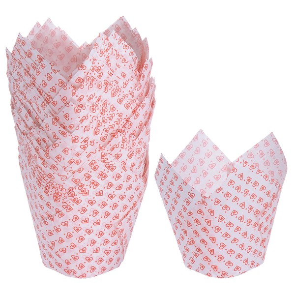HARFINGTON 50pcs Tulip Cupcake Liners Greaseproof Baking Cups Paper Cupcake Wrappers Holders for Parties Weddings Birthdays, Heart-Shaped