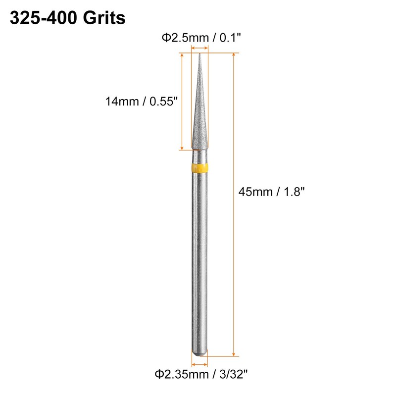 HARFINGTON 5pcs 325-400 Grits Diamond Grinding Bit 2.5mm Tapered Head 2.35mm Shank 14mm Length Stone Sanding Drill Bits Rotary Tool for Ceramic Glass Nails Grinding Polishing