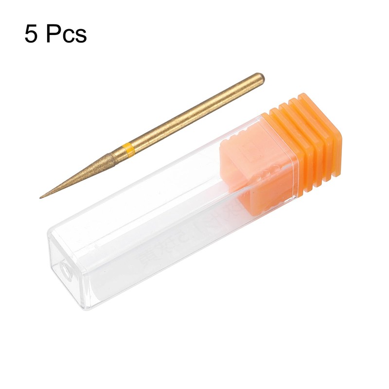 HARFINGTON 5pcs 325-400 Grits Diamond Grinding Bit 2.5mm Tapered Head 2.35mm Shank 14mm Length Titanium Plated Stone Sanding Drill Bits Rotary Tool for Nails Grinding Polishing