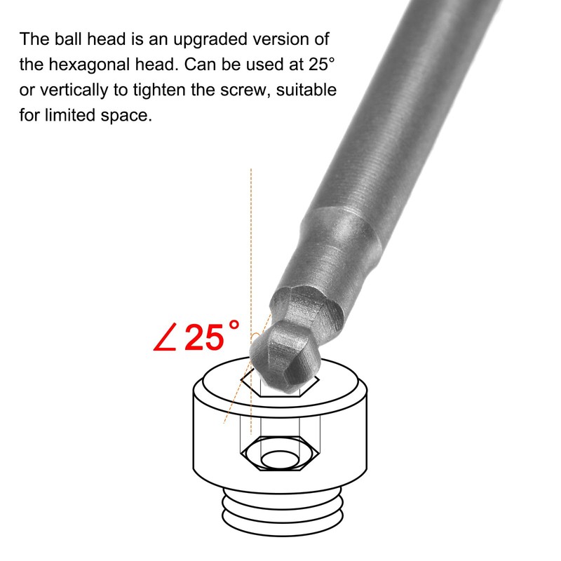 - Application - The ball end hex head wrench drill bit is widely used in electric screwdrivers, manual screwdrivers, electric drills, air drills, or any other electric drills with 1/4 inch hex handle, the suitable tool for repairing household appliances, precision instruments, and furniture.