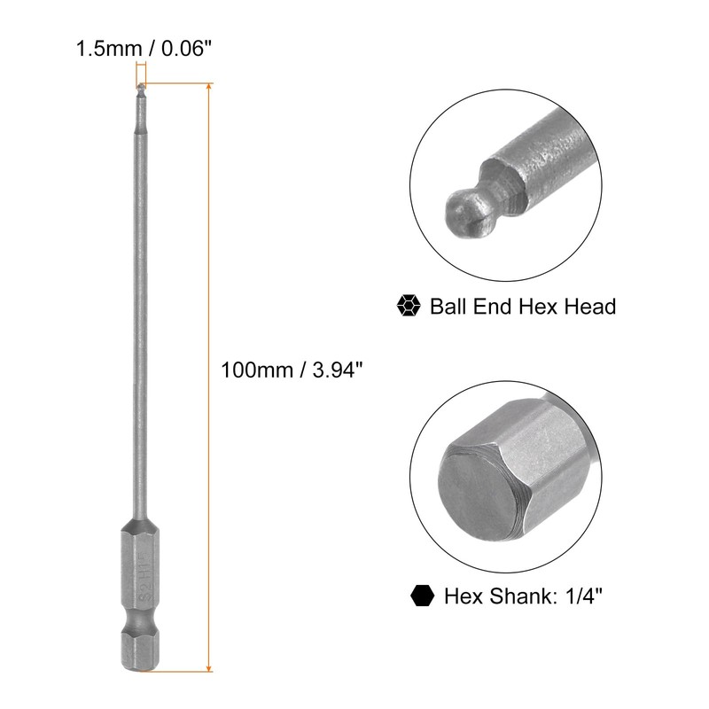 - Size - Length: 100mm/3.94"; Ball End Diameter: 1.5mm/0.06"; Hex Shank: 1/4"