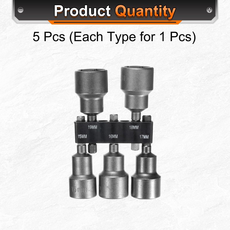 HARFINGTON 5pcs Hex Nut Driver Drill Bit 15/16/17/18/19mm 6-Point Drill Socke...