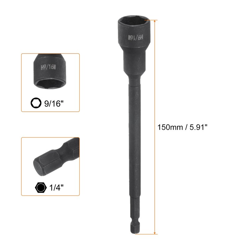 - Size - Specification: 9/16 inches, Hex Shank Specification: 1/4 inch, Total Length: 150mm for reaching deep and narrow spaces, Set includes 5pcs Magnetic Nut Driver