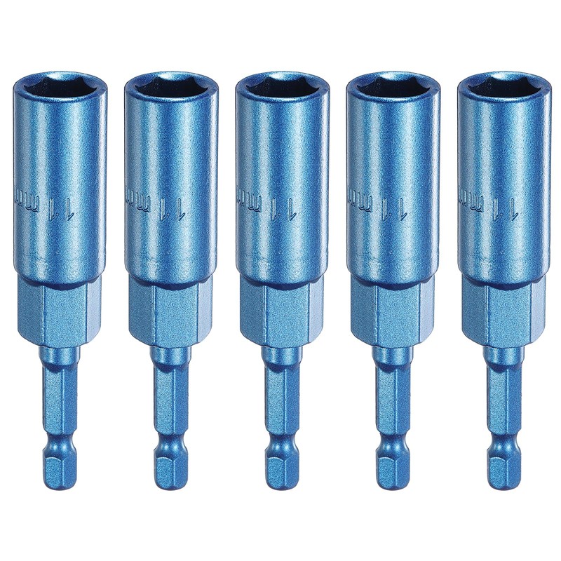 HARFINGTON 5pcs Nut Driver 11mm Hex Drive Socket CR-V Steel Power Screw Drill Bits Socket Wrench Tools with 1/4" Quick Change Hex Shank for Power Drills Impact Drivers, Blue