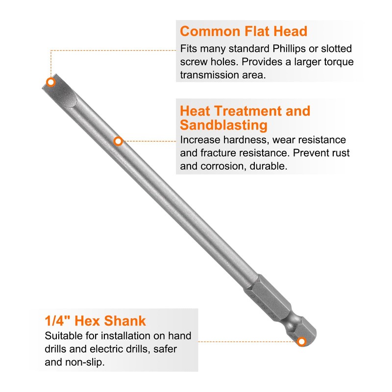 - Features - The flat head screwdriver head adopts strong magnetism design, which can absorb screws vertically or obliquely, and can be in close contact with the screws, making the disassembly and installation more stable and not easy to slip.