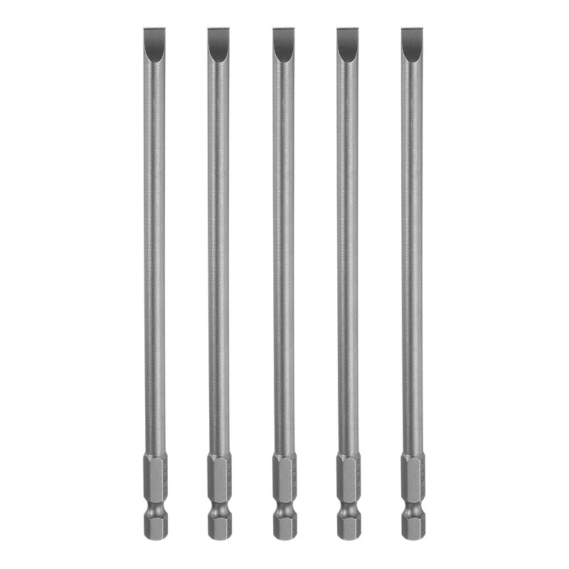 HARFINGTON 5pcs SL6 Magnetic Slotted Screwdriver Bits 6mm S2 Steel Flat Head Screwdriver Bit 1/4" Hex Shank Industrial Grade Screw Driver Drill Bits 6" Long for Remove Fastening Screws