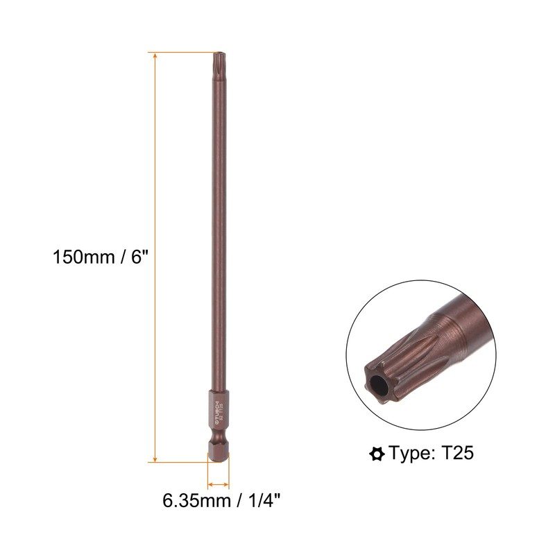 - Size - T25 Star Head, 1/4" Hex Shank, 6" (150mm) total length.