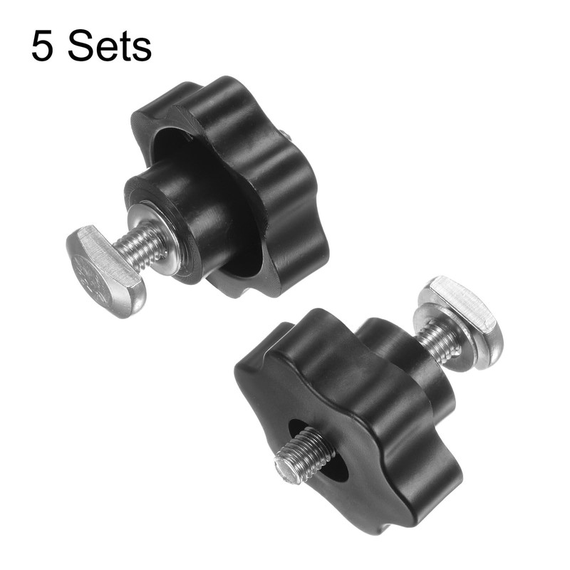 HARFINGTON 5Set T Track Bolts Knob Kit M8 x 45mm Threaded Bolts M8 x 48mm Hex Hand Nut Clamping Knob with Washer for Woodworking Jigs and Fixtures, Black
